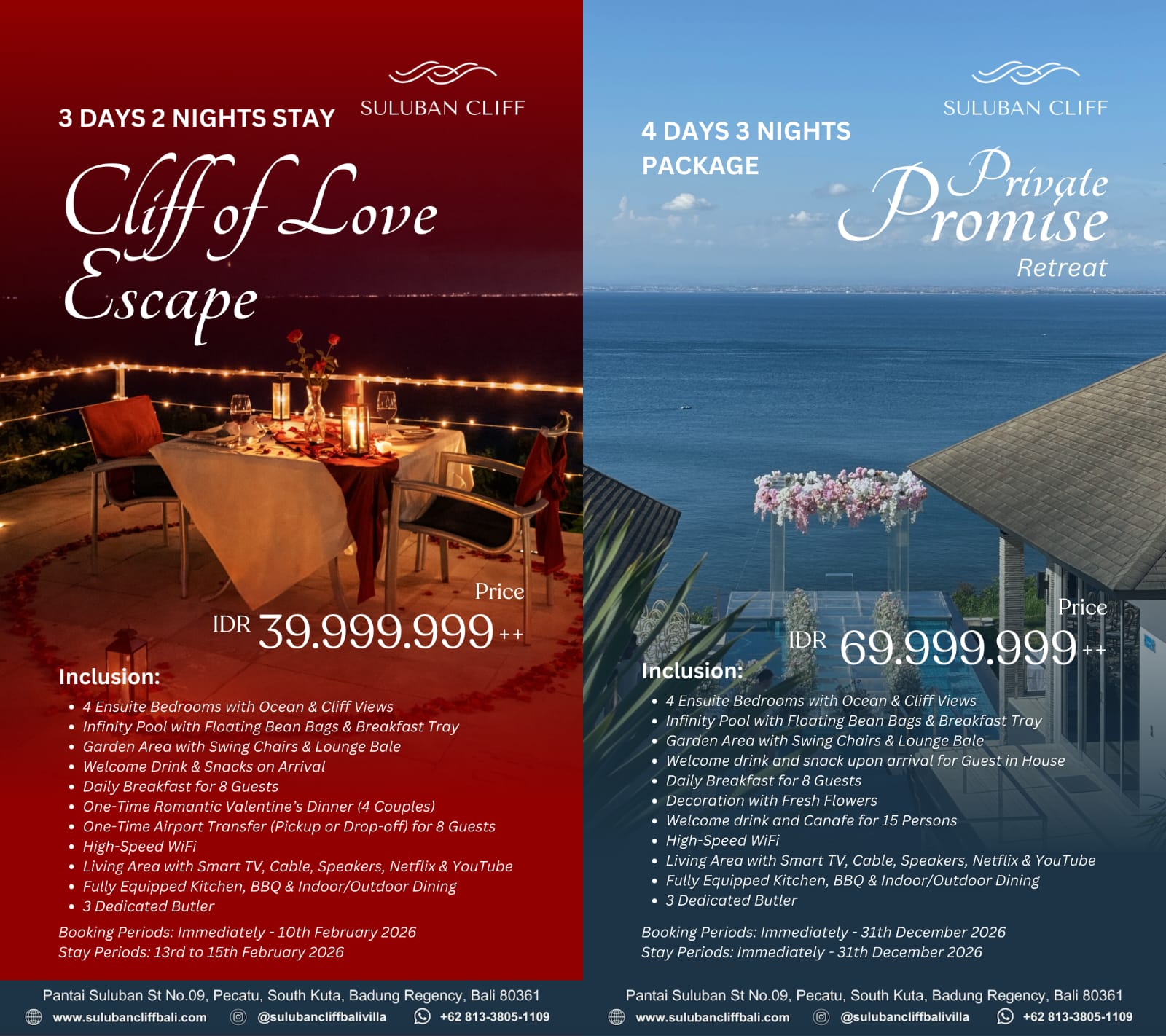 Indulge in a well-deserved escape from the hustle and bustle to find peace of mind and recharge with a long-stay accommodation package at Suluban Cliff Bali Villa